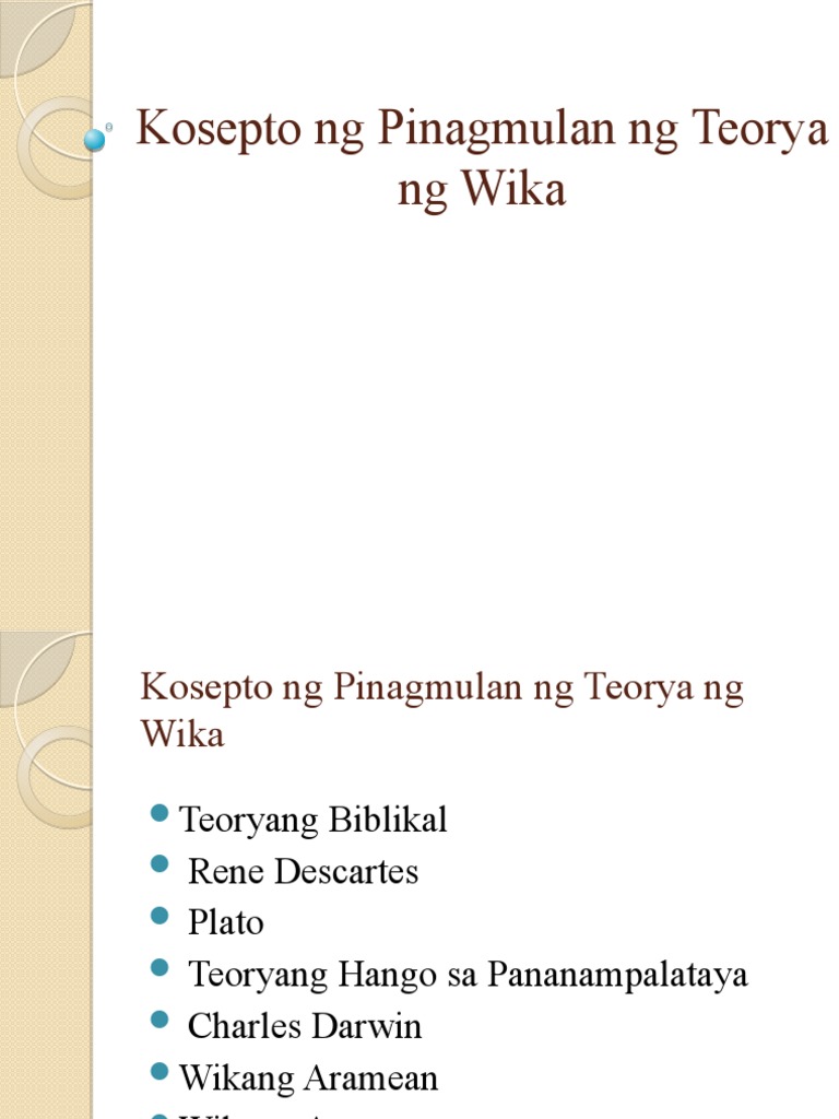 Kosepto Ng Pinagmulan Ng Teorya Ng Wika